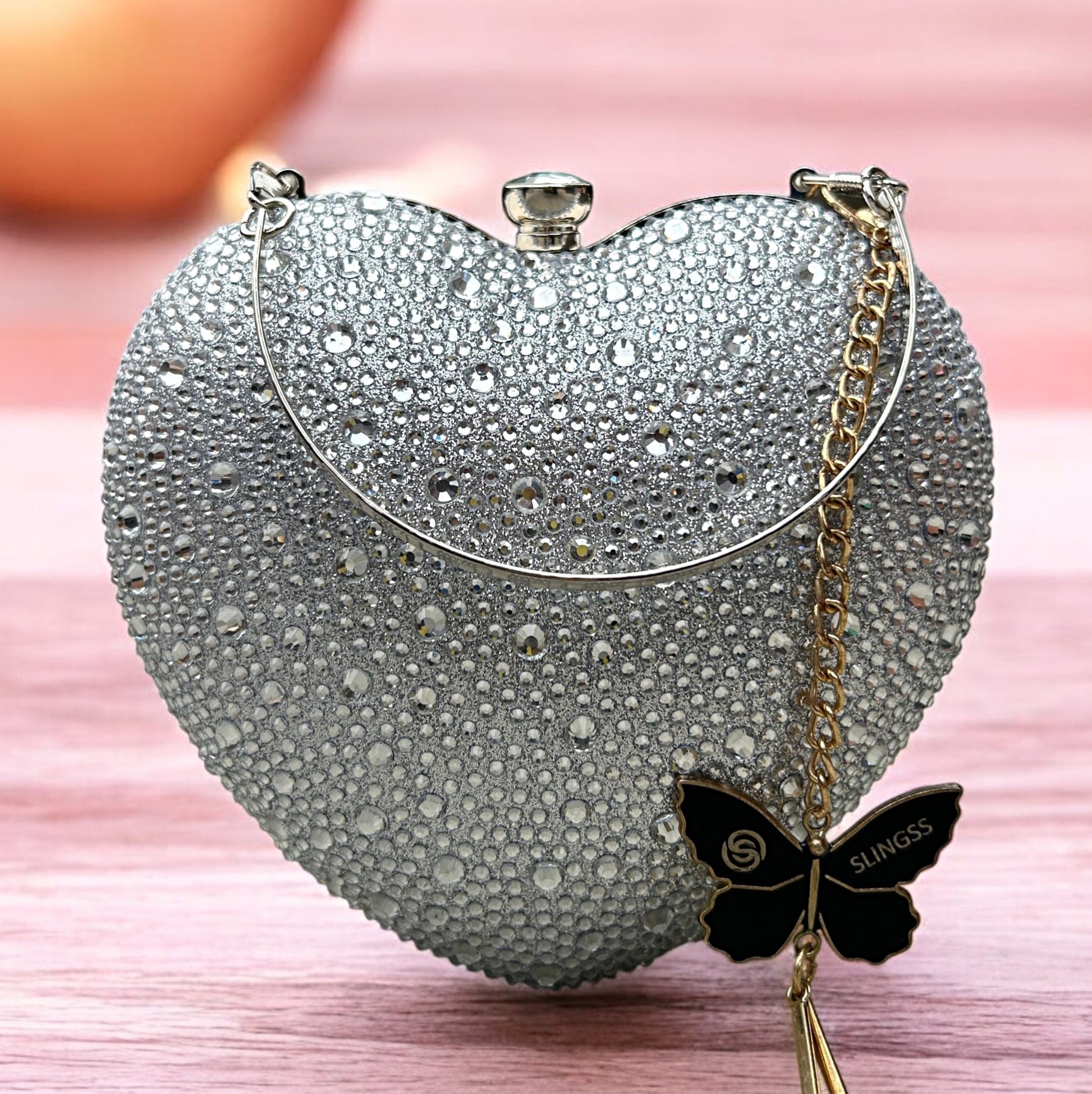 Slingss Exclusive Premium Heart Shape Water Droplets Design Partywear Embroidered Clutch For Ladies With Handle & Long Chain