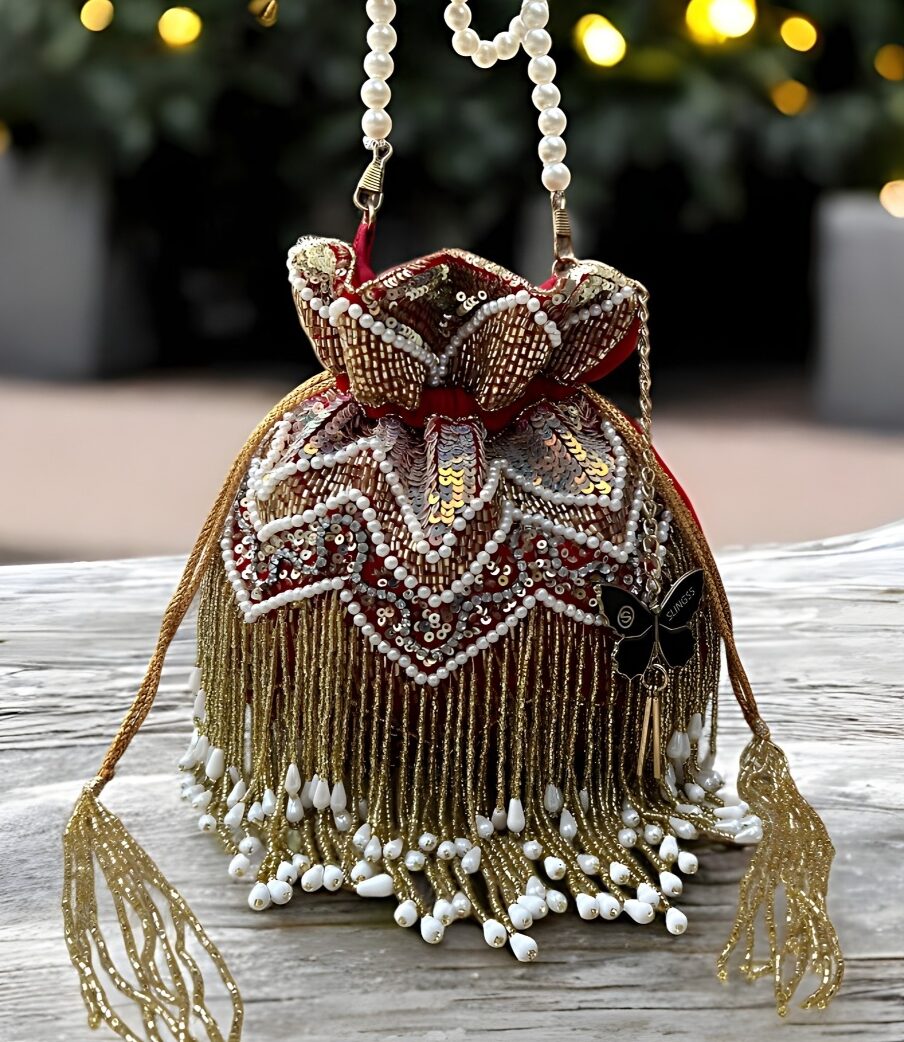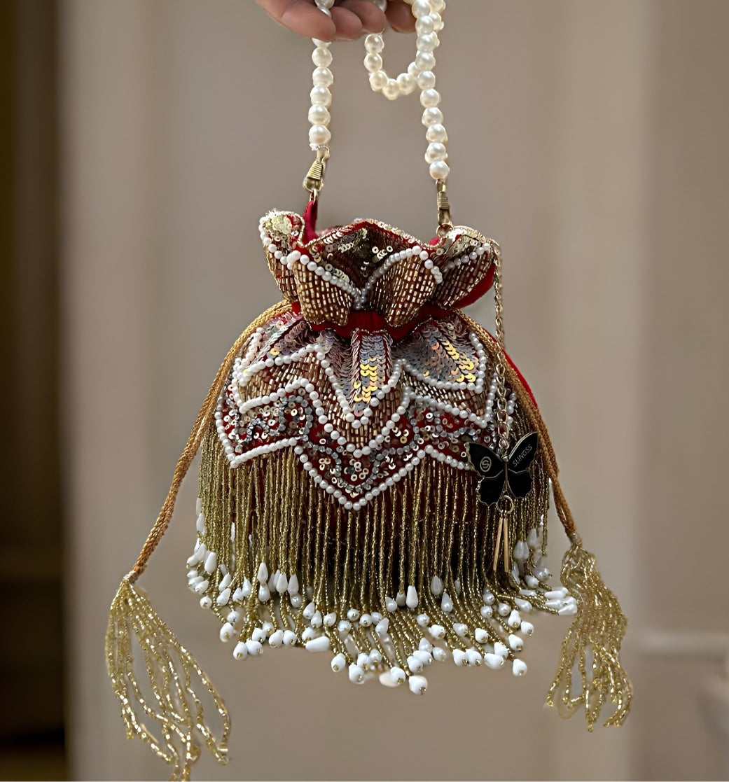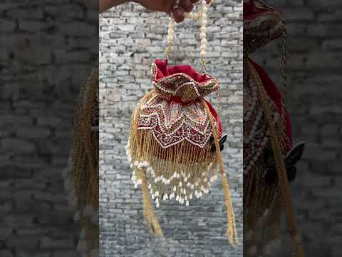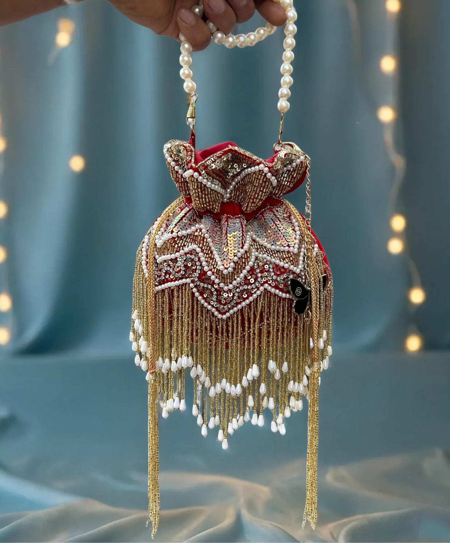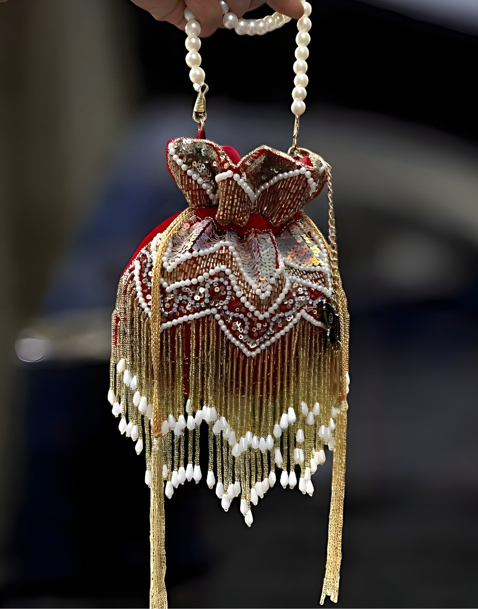Slingss Exclusive Premium Jhallar Embroidered Partywear Potli For Ladies With Handle
