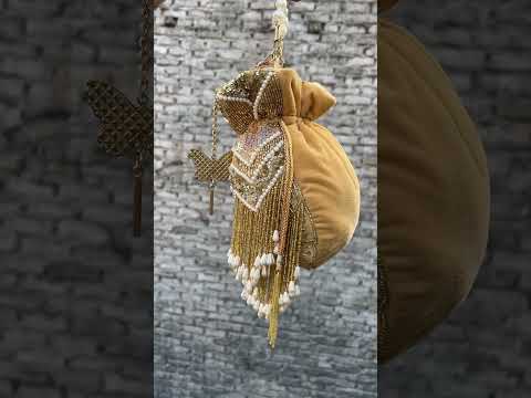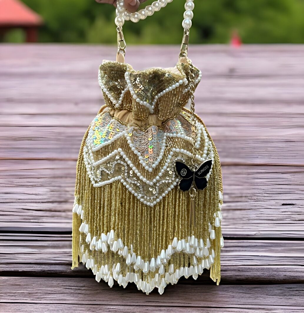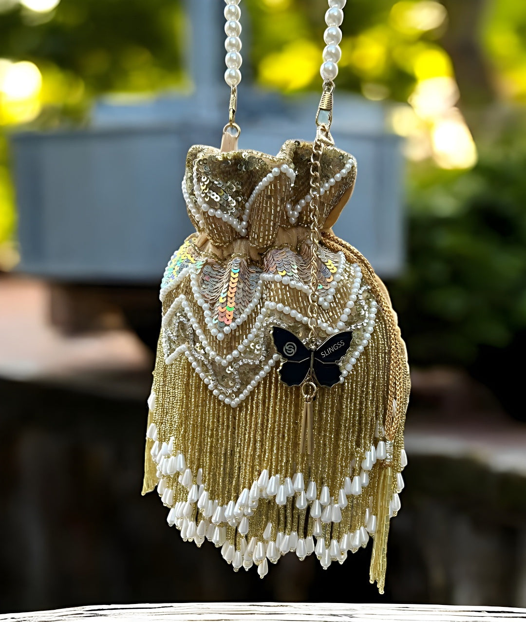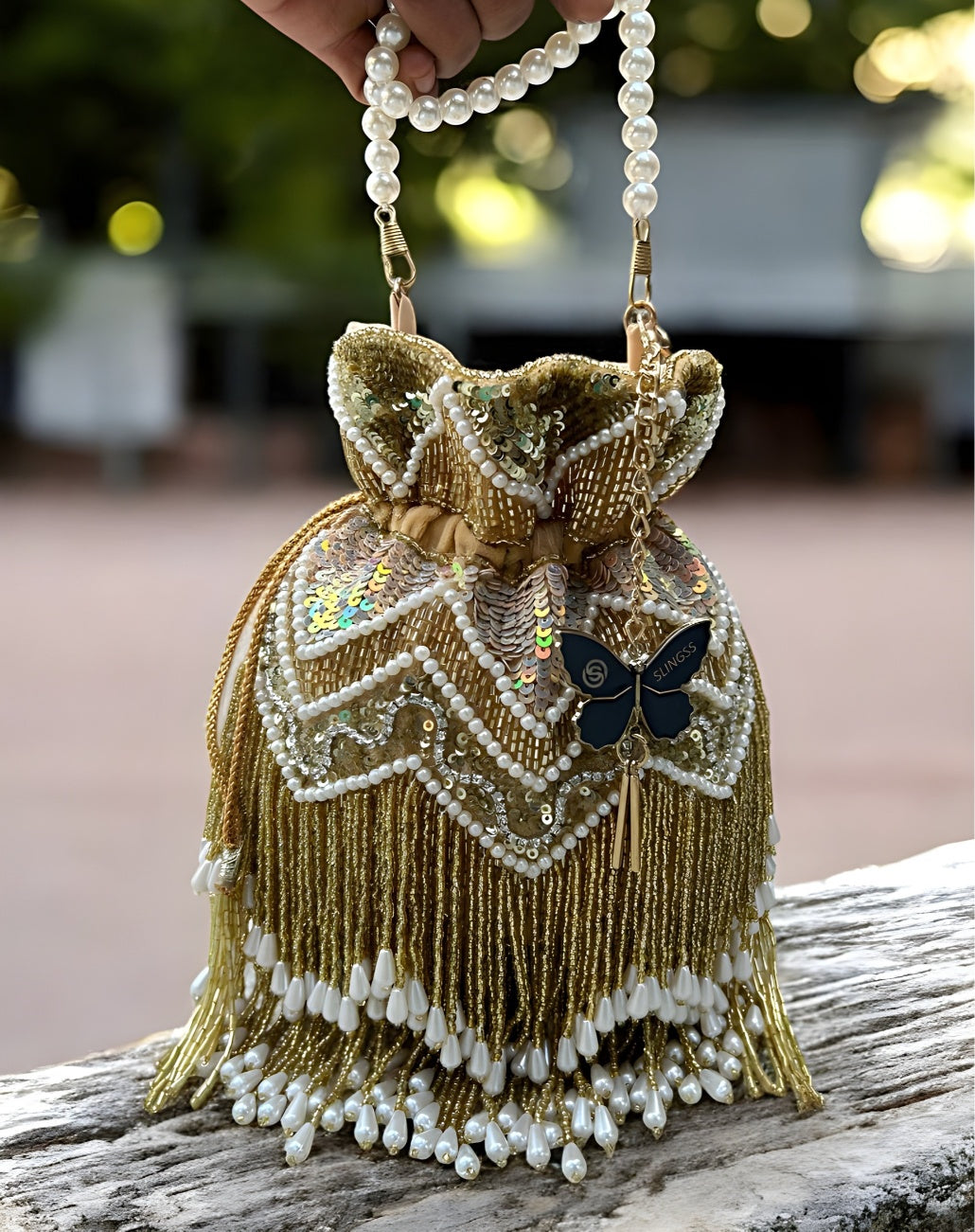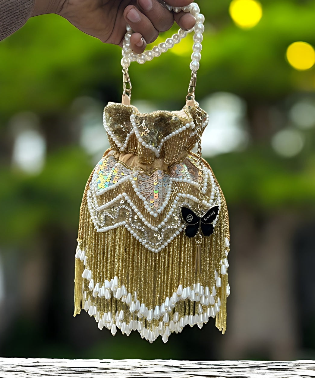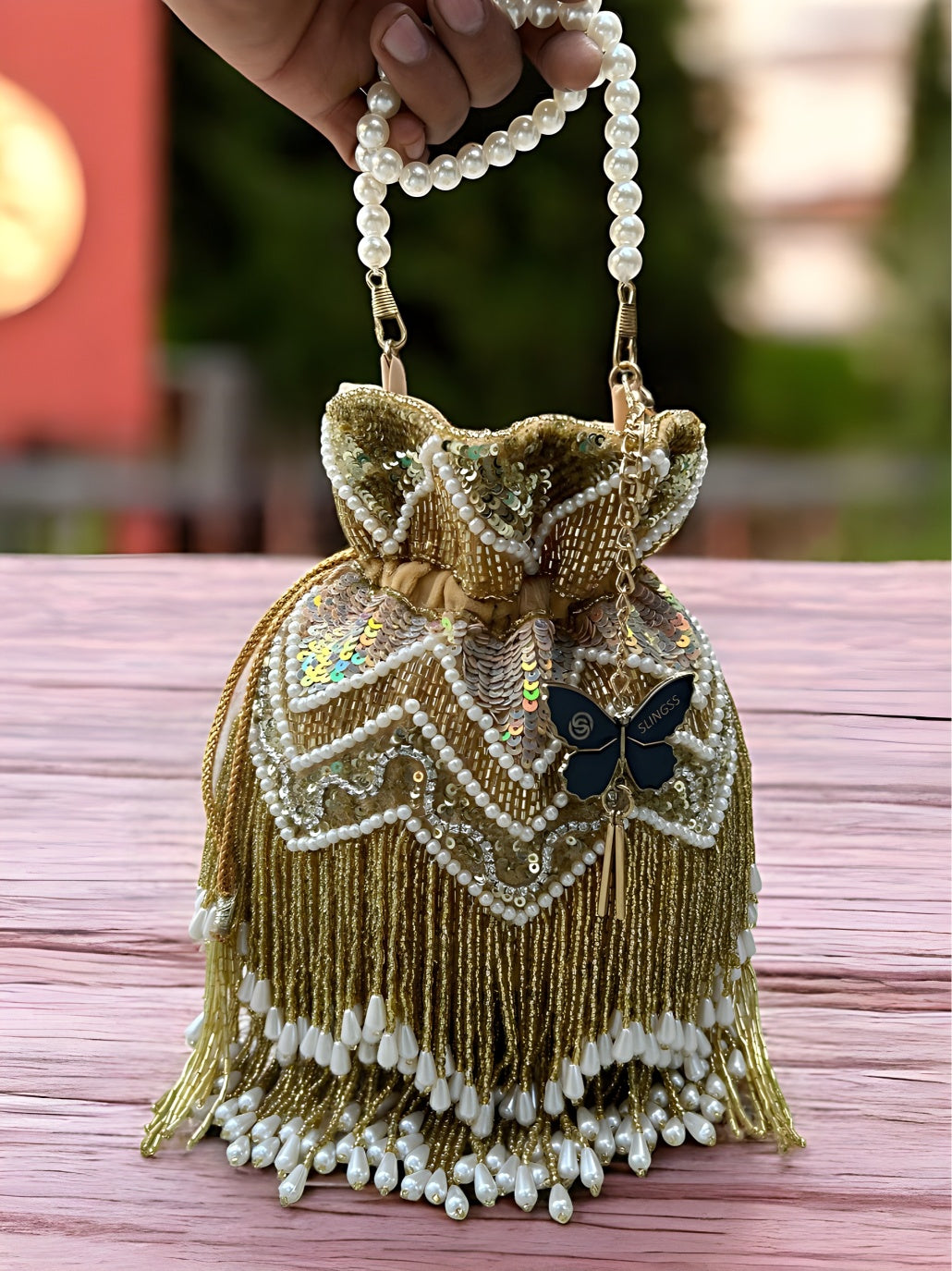 Slingss Exclusive Premium Jhallar Embroidered Partywear Potli For Ladies With Handle
