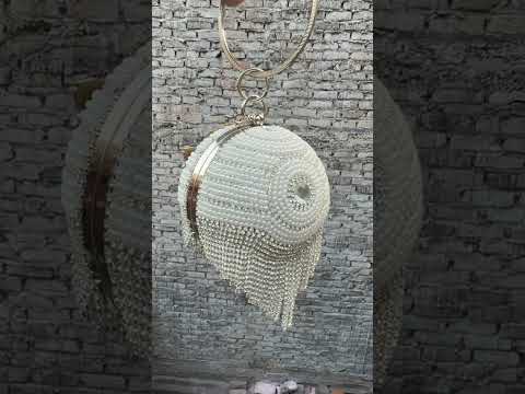 Slingss Exclusive Premium Ball Shaped Partywear Embroidered Clutch For Ladies With Handle & Long Chain