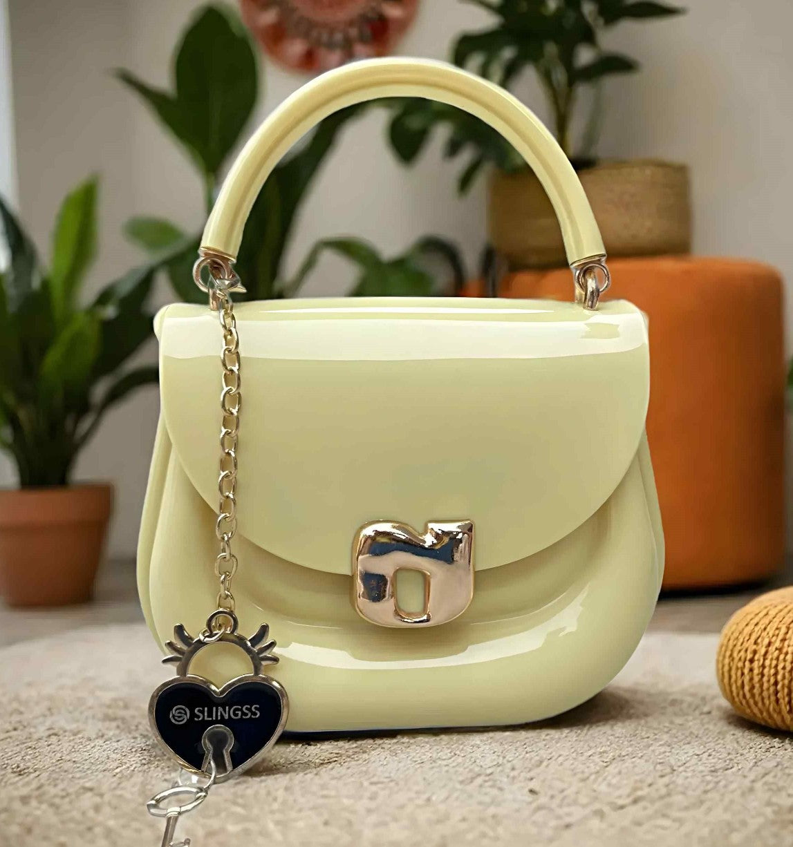 Slingss Mini Partywear Silicon Purse For Girls With Handel & Long Belt