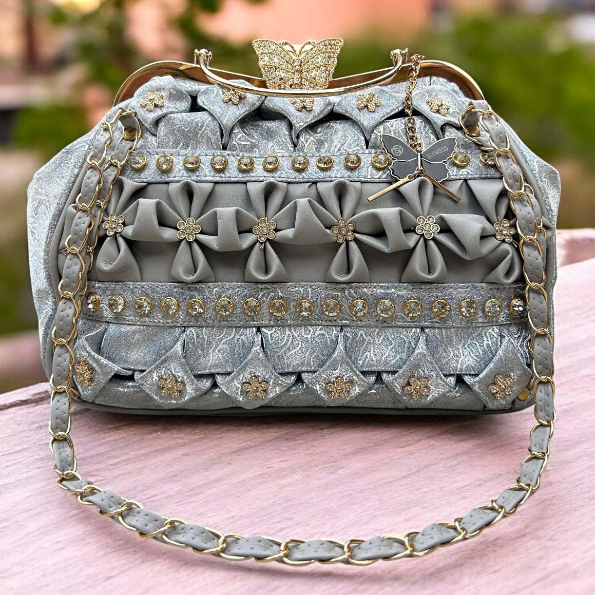 Slingss Luxury Range Big Size Embroidered Partywear Bag For Ladies With Handle & Shoulder Strap