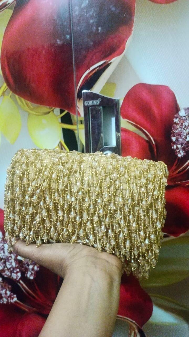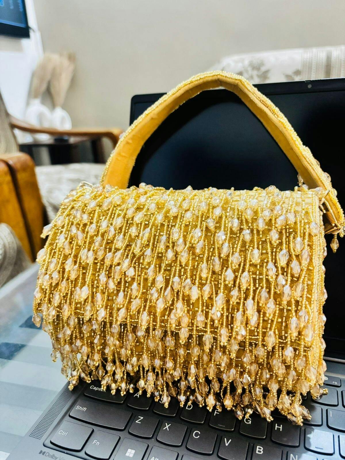 Slingss Luxury Range Crystal Full Jhallar Embroidered Partywear Purse For Ladies With Handle