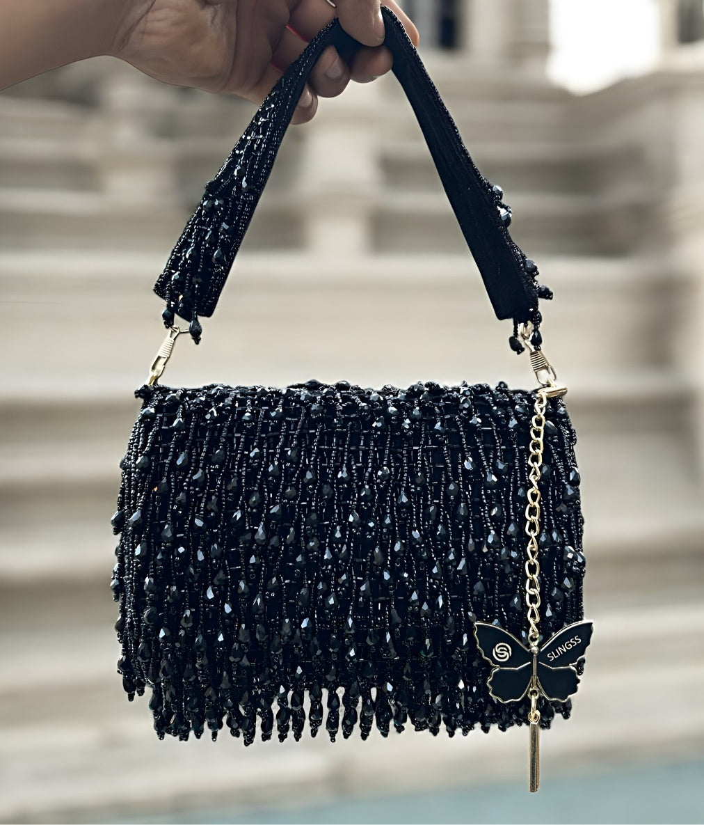 Slingss Luxury Range Crystal Full Jhallar Embroidered Partywear Purse For Ladies With Handle