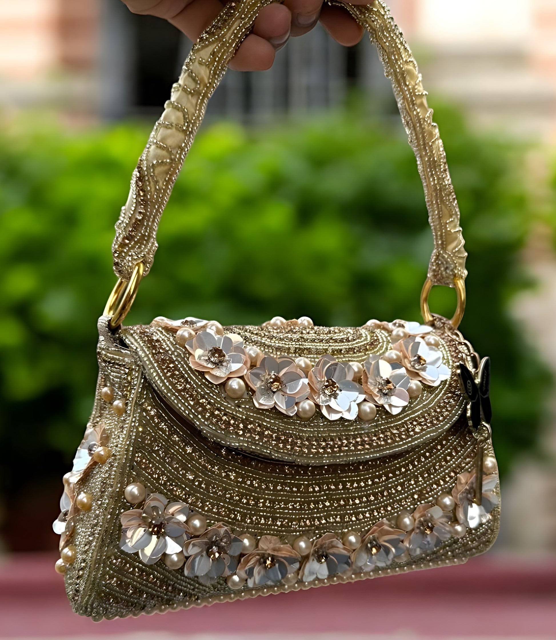 Slingss Luxury Range Flower Embroidered Partywear Handbag For Ladies With Handle