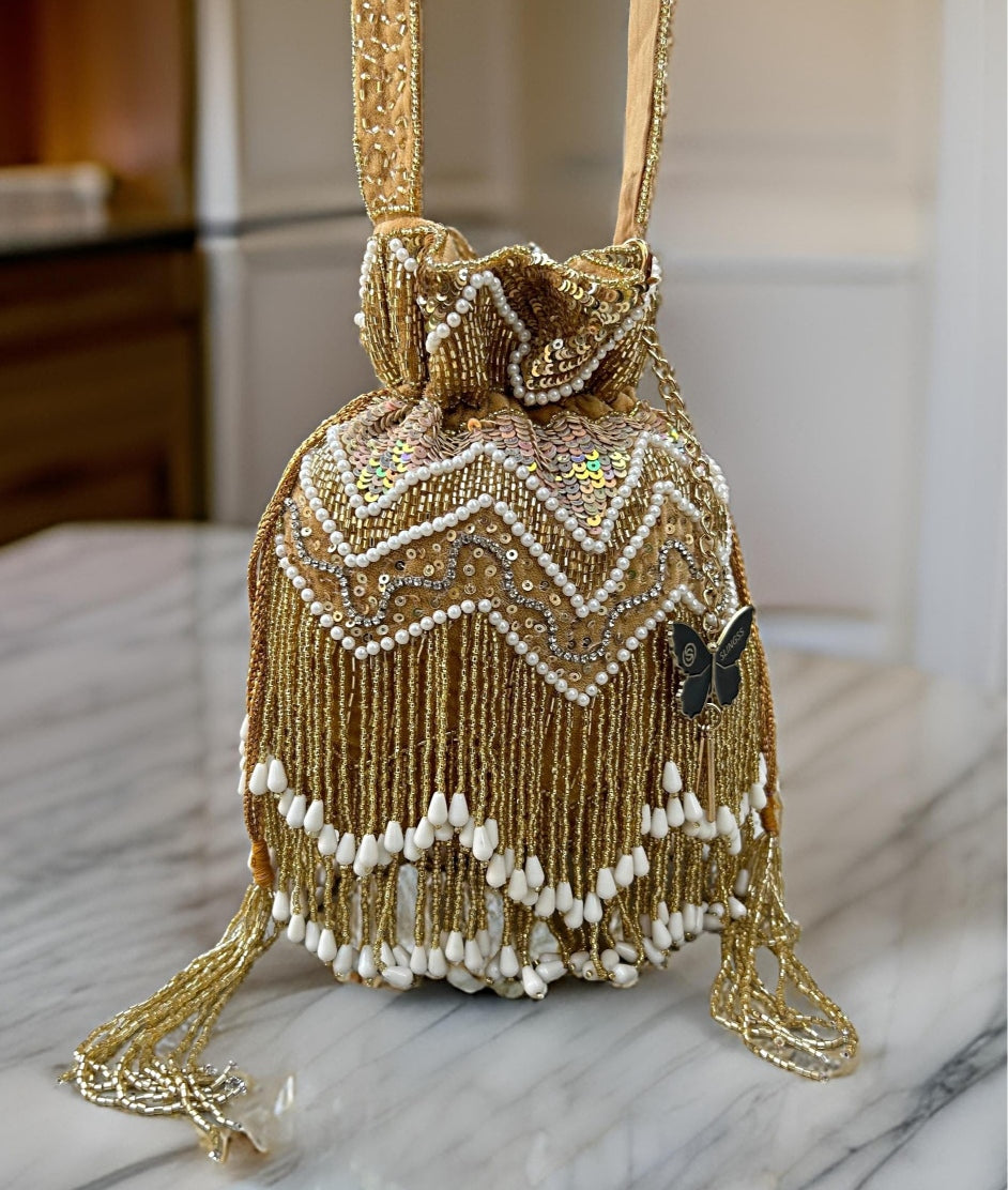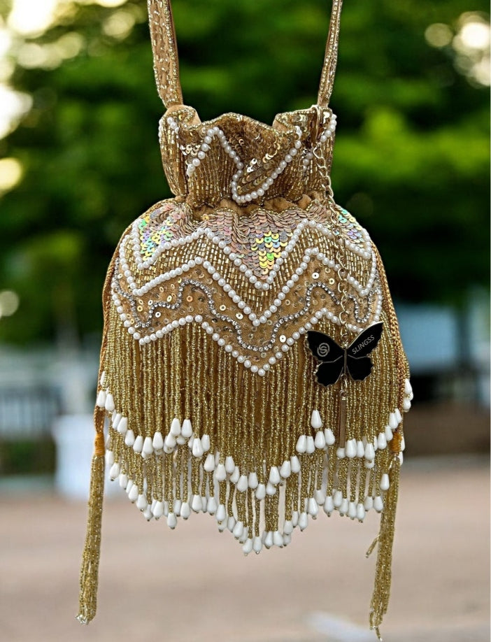Whether you're attending a wedding, a Diwali celebration, or any other special event, this Exclusive Luxury Range potli will elevate your style and make you feel confident and elegant. Treat yourself to this stunning accessory and let your fashion sense shine.