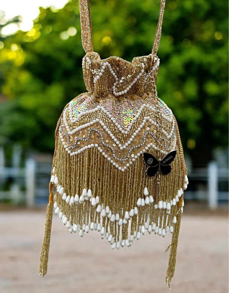 Slingss Exclusive Luxury Range Double Side Jhallar Embroidered Partywear Potli For Ladies With Handle